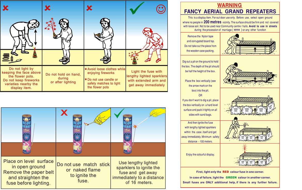 • Fireworks should not be used between 10.00 pm & 6 am as per Supreme court order.